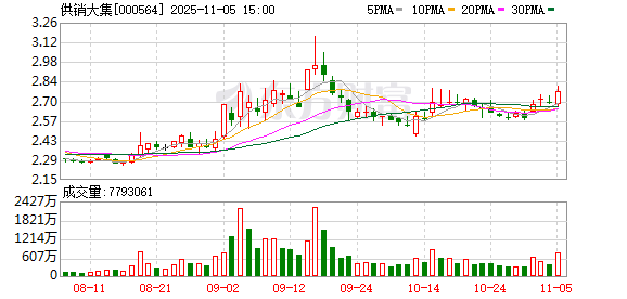 证券时报·数据宝统计显示,供销大集今日收盘价为2.77元,上涨2.59%,日换手率为5.30%,成交额为21.55亿元,全天主力资金净流入9289.74万元,近5日该股累计上涨5.73%,近5日资金合计净流入8006.37万元。