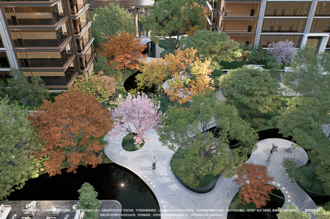 此外,项目还加宽了水轴,将清河水景引入园内,部分楼栋的业主在家里就能欣赏到水景。