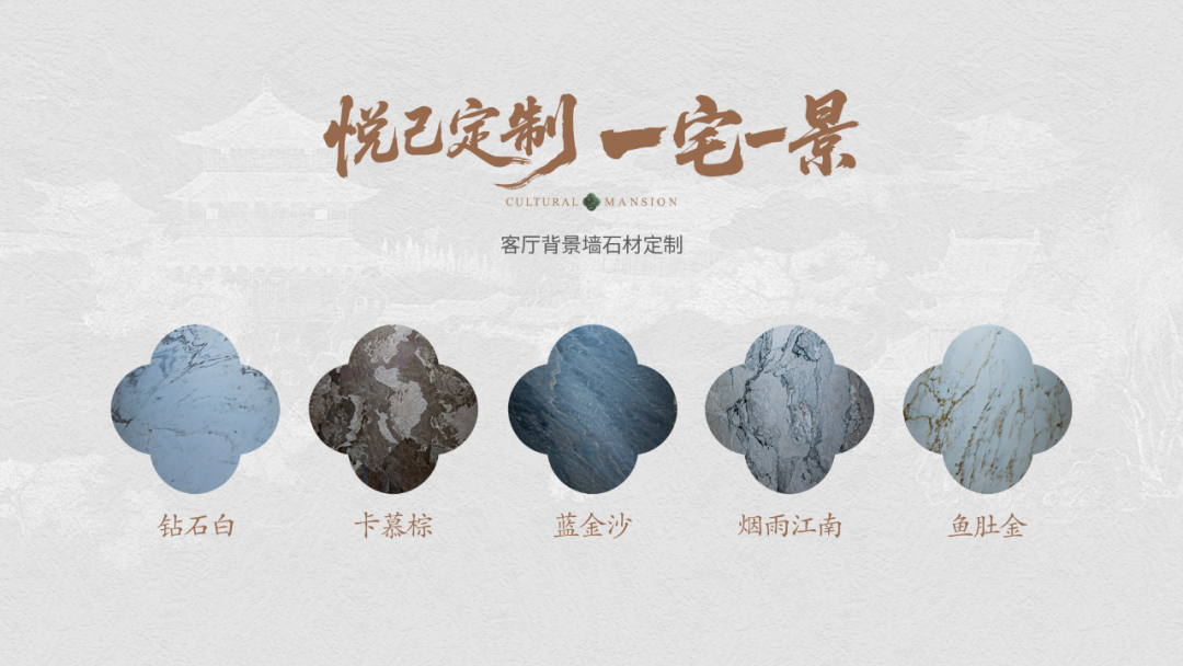 又比如高定设计层面,客户可以根据个人喜好,从5款奢石中挑选并定制客厅背景墙,真正将审美选择权交还给业主,让业主升格为空间的创造者。