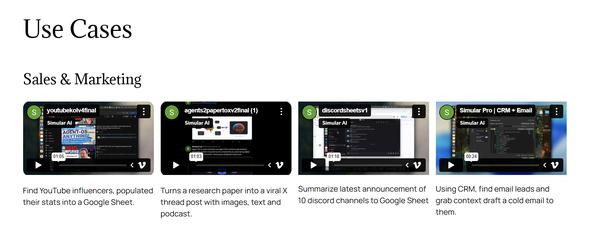 这种直接掌控PC的定位,让Simular的应用场景更为广泛。Simular的早期测试版客户包括一些行业内的先锋,例如汽车经销商借助simular实现车辆识别码自动检索,以及业主委员会利用它从PDF文件中提取合同信息。而其面向Mac OS的开源项目,更是催生出涵盖内容创作、销售营销等多个领域的自动化解决方案。