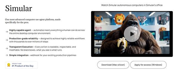 12月1日,Simular正式宣布推出适用于Mac OS的1.0版本,标志着其核心技术已具备落地能力。与此同时,该公司正与微软深度合作,推进Windows版智能助手的研发进程。